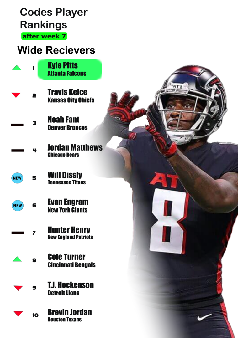Codes Player Rankings Week 7 (TEs)