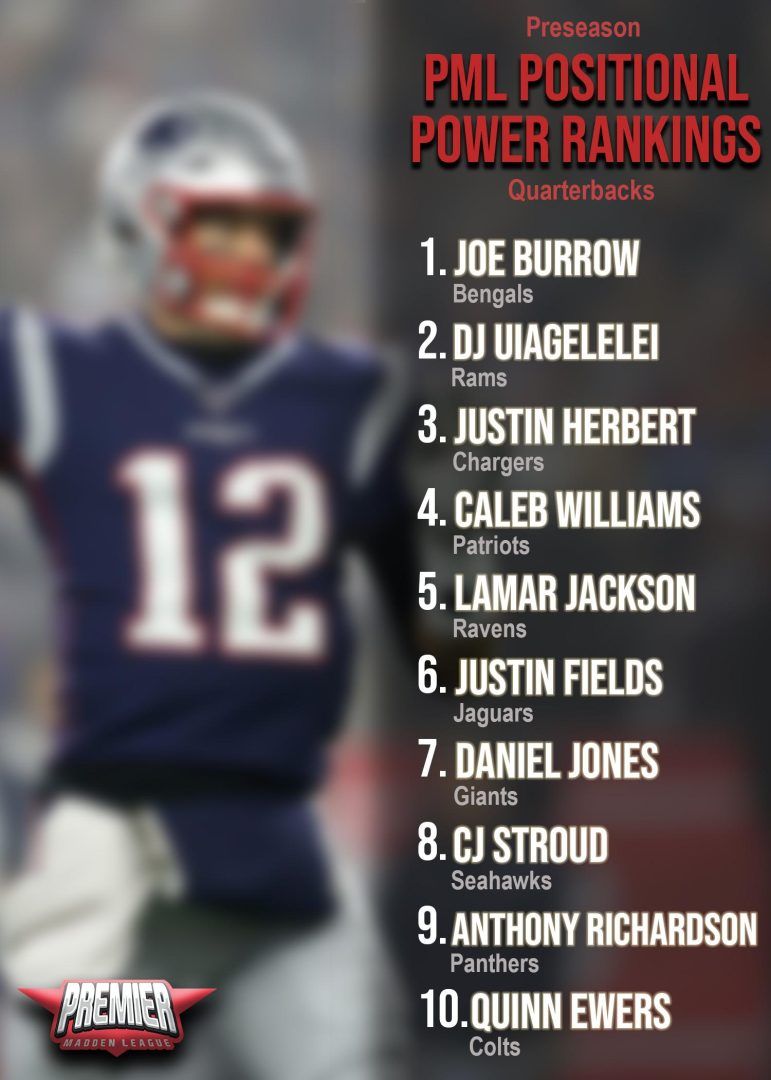 PML QB Rankings Entering Season 4 (Graphics by CB)