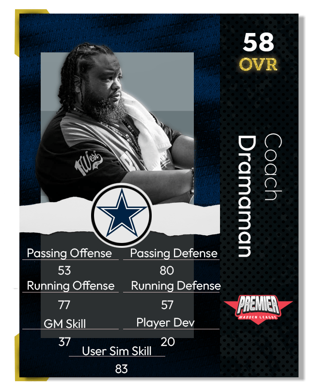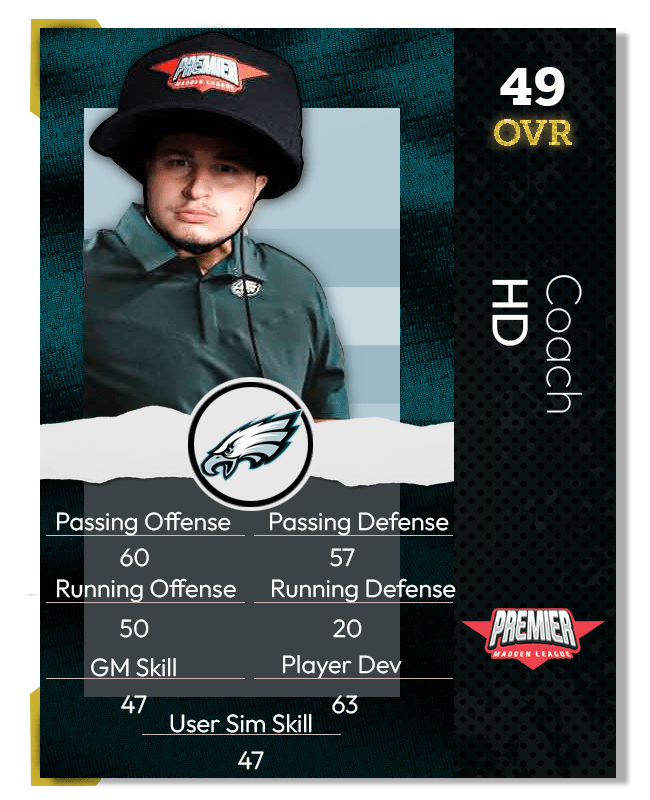 As we approached week 1, season 1 of the PML Madden 24 cycle our friends at the breakfast show gave us a break down of how each coach rates as a user. This article is somewhat of a companion to those ratings. I have put together a coach card for each of the coaches for the NFC East. I hope you all enjoy this graphical representation of the great content provided by the breakfast show crew, and remember…..If you don’t like your rating you have to take it up with those guys!
