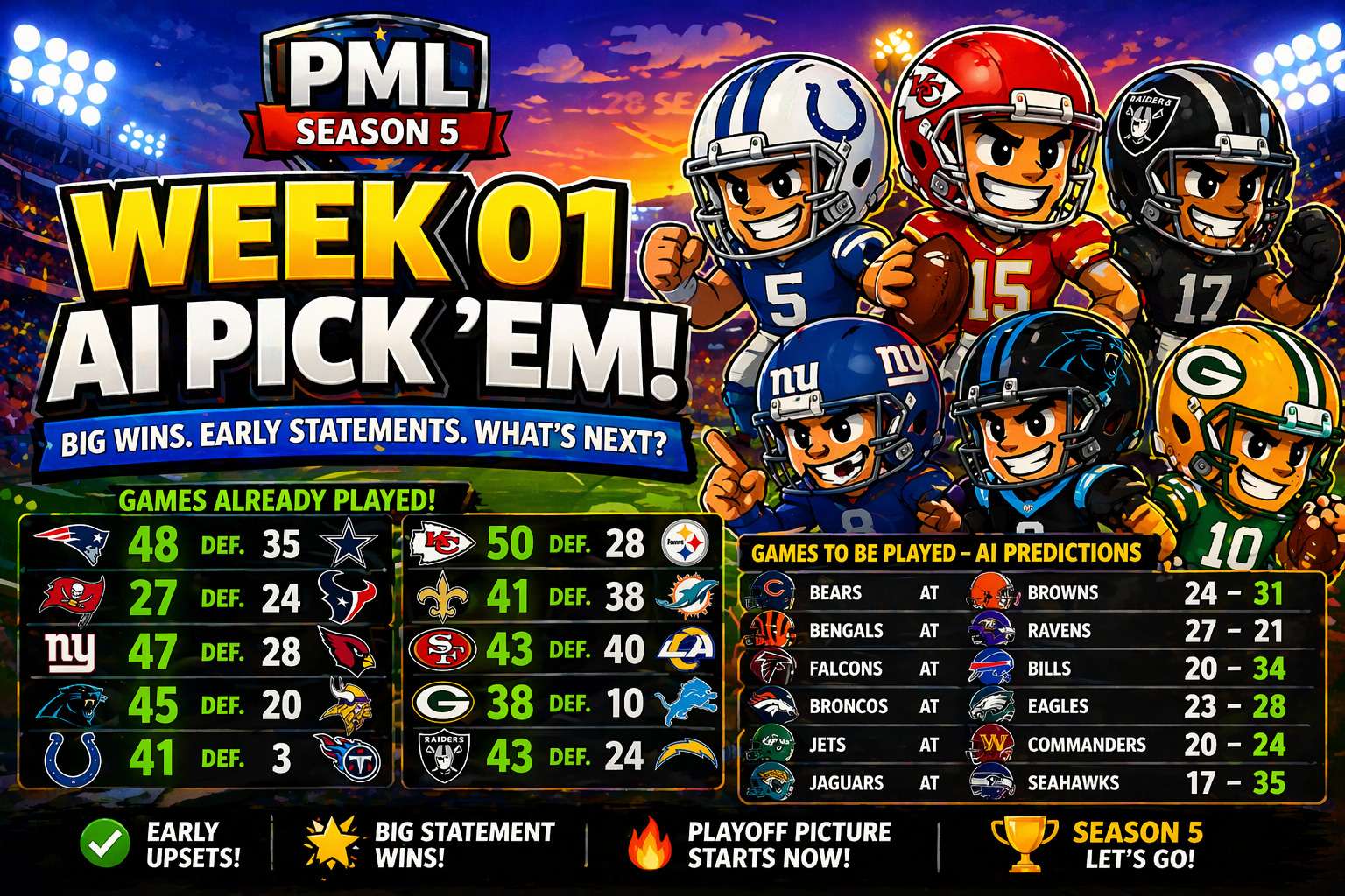 Week 1 of Season 5 is already delivering chaos. Some teams picked up right where they left offโฆ while others look like theyโre in for a long season.